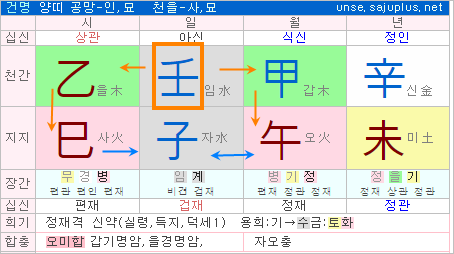 또한 일지가 간여지동이기는 하지만, 용신이라 아내덕도 있는 명조로 봅니다.
