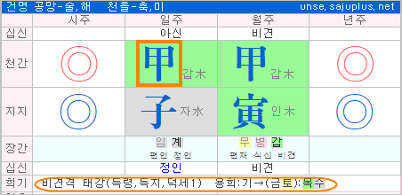 .위 명조의 경우는 중년까지는 다소 힘드는 명조이나, 노년이 되면서 운세가 풀려나갑니다.