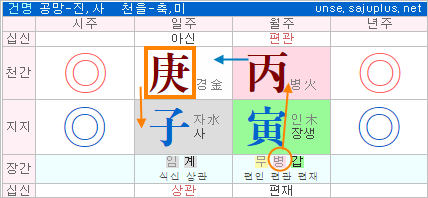 .일간 경금은 원석이라 병화의 극을 꺼리지 않습니다.
