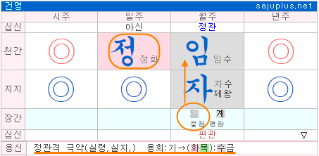 위 명조는 경신월에 태어난 갑목일간이, 월지 신금의 지장간 중에 본기인 편관 경금이 월간에 투출하여 편관격이 된 경우입니다. 이 명조에서 일지에 오화가 오는 경우와 자수가 오는 경우, 일간의 성향은 완전히 달라지게 됩니다.