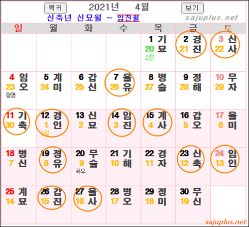 다음 포스팅에서는 위 절차를 사주프러스의 프로그램으로 좀더 쉽게 확인하는 방법을 알아 보기로 합니다.