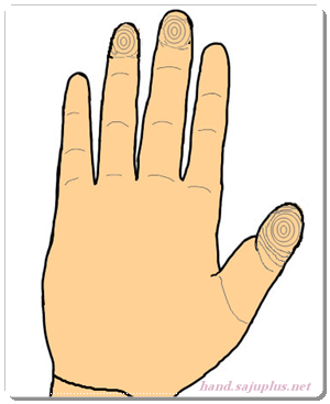 6. 약지와 소지를 제외한 모든 손가락이 와문인 경우