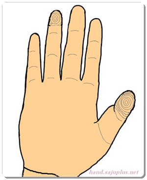 여기서는 엄지 손가락이 와문인 경우의 지문에 대하여 알아보겠습니다.