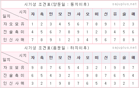 시구성은 일구성과 더불어 일시반을 작성하여 점사로 이용합니다.