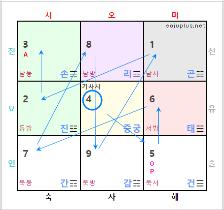 4.사록목성인이 방문한 경우면 상수 4가 중궁에 위치한 경우입니다.