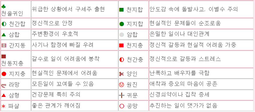 운세해석-합,충,형,천을귀인, 원진, 귀문 등의 해석