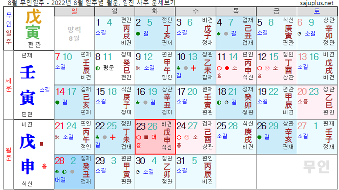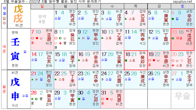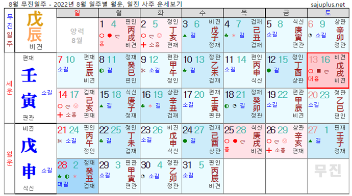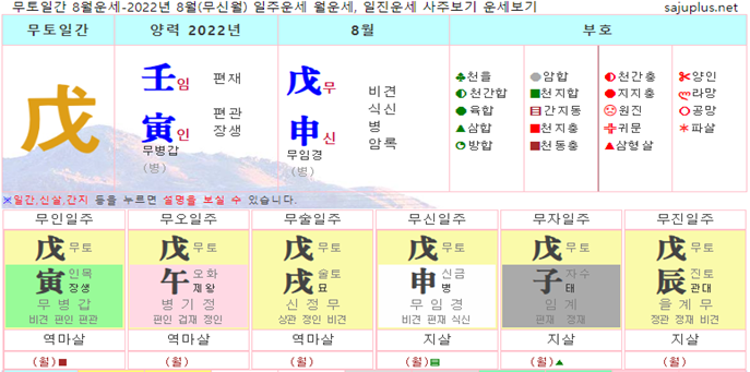 무토일간 8월운세-2022년 8월(무신월) 일주운세 월운세, 일진운세 사주보기 운세보기