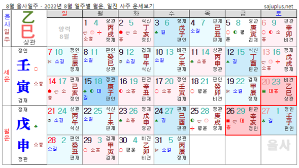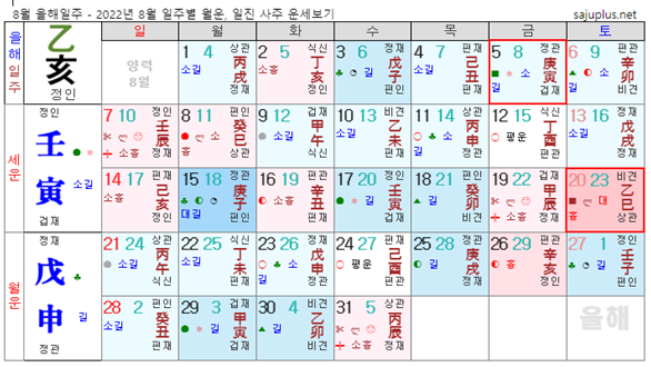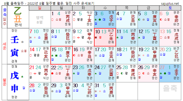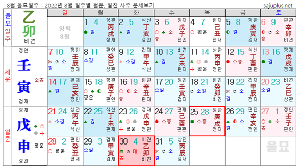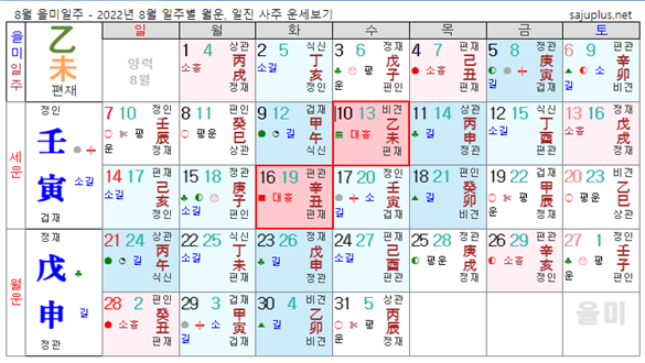 을목일간 8월운세-2022년 8월(무신월) 일주운세 월운세, 일진운세 사주보기 운세보기