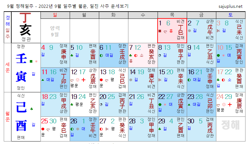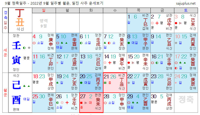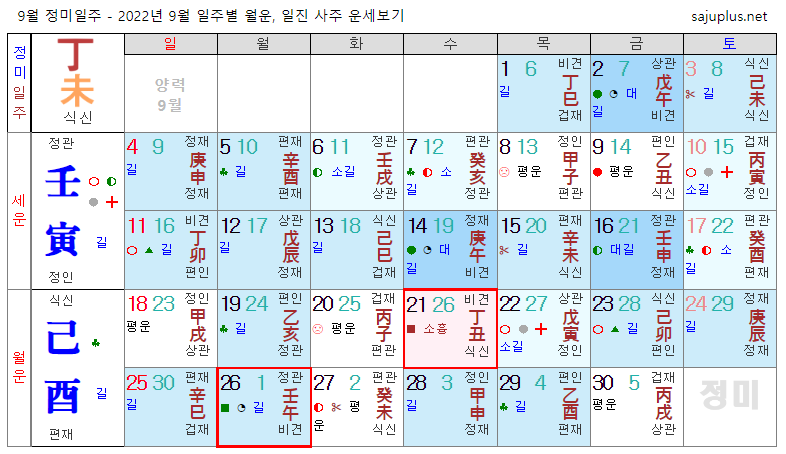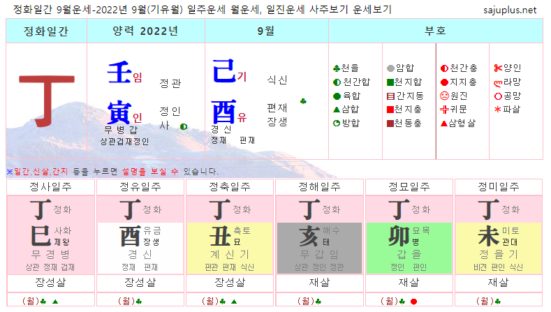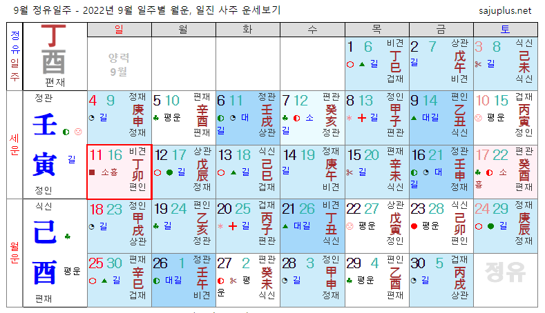 정화일간 9월운세-2022년 9월(기유월) 일주운세 월운세, 일진운세 사주보기 운세보기