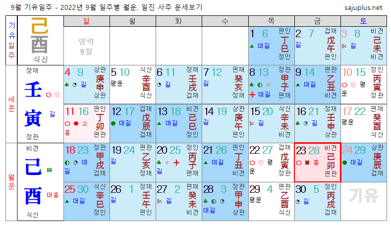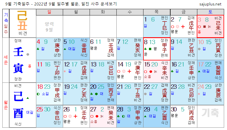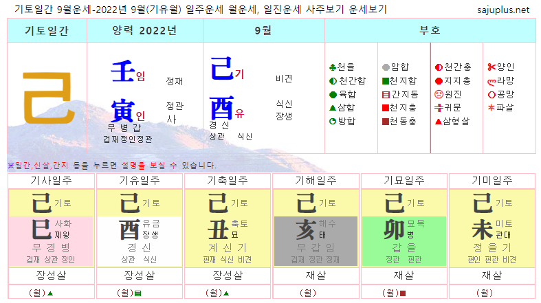기토일간 9월운세-2022년 9월(기유월) 일주운세 월운세, 일진운세 사주보기 운세보기