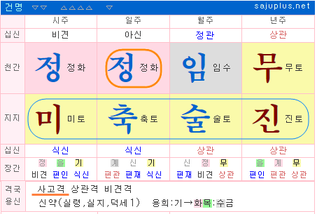 일지가 타주를 극하는 경우는 유리하지만, 극을 받으면 불리하고, 지지가 인성이나 식상인 경우가 유리하다고도 합니다.