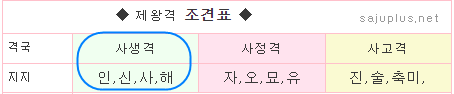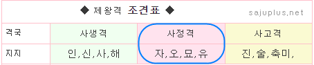 사정격은 지지에 왕지인 자,오,묘,유가 모두 있는 것으로 사패격이라고도 합니다.