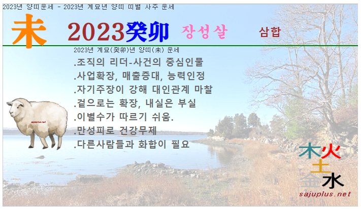 2023년 양띠운세 - 2023년 계묘년 양띠 띠별 사주 운세