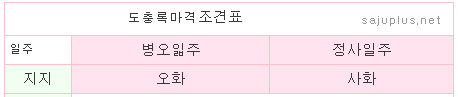 도충록마격은 도충록격 또는 총관격으로 불리기도합니다.병오일주가 월지가 오화이면서 연지나 시지가 오화인 경우와 정사일주가 월지가 사화이고 연지나 시지가 사화인 경우가 도충록마격에 해당합니다.