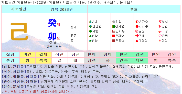 기토일간 계묘년운세-2023년(계묘년) 기토일간 세운, 1년신수, 사주보기, 운세보기
