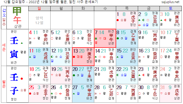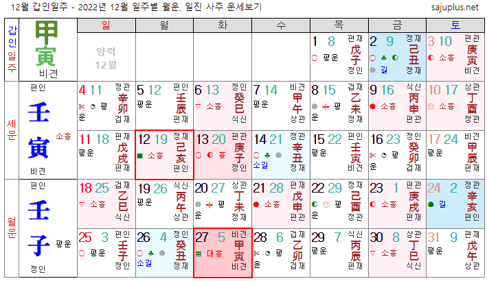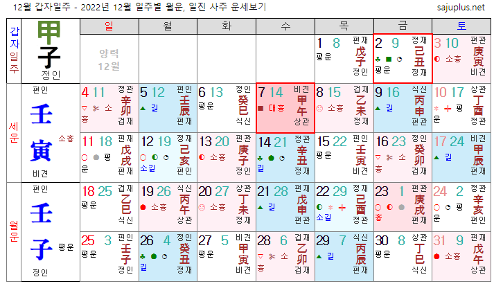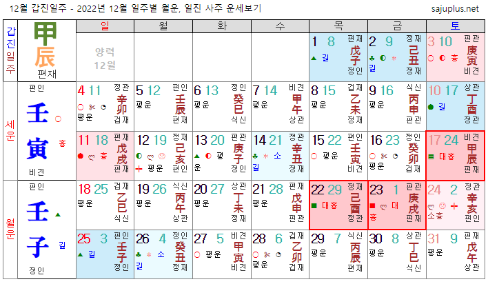 갑목일간 12월운세-2022년 12월(임자월) 일주운세 월운세, 일진운세 사주보기 운세보기