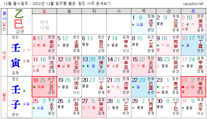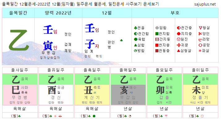 을목일간 12월운세-2022년 12월(임자월) 일주운세 월운세, 일진운세 사주보기 운세보기