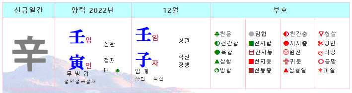 신금일간 12월운세-2022년 12월(임자월) 일주운세 월운세, 일진운세 사주보기 운세보기