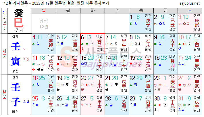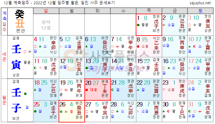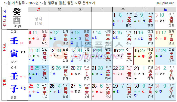 계수일간 12월운세-2022년 12월(임자월) 일주운세 월운세, 일진운세 사주보기 운세보기