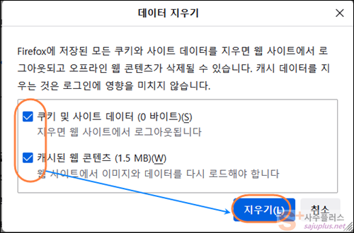 [쿠키 및 사이트 데이터] 항목에서 [데이터 지우기]를 클릭합니다.