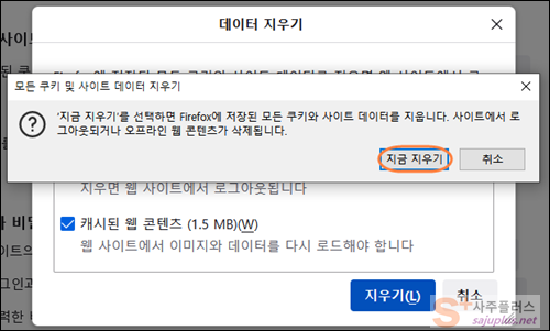 경고창은 무시하시고, [지금지우기]를 클릭하시면 작업은 끝납니다.