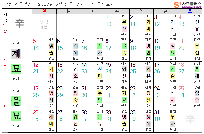 신금일간 3월운세-2023년 3월(을묘월) 일주운세 월운세, 일진운세 사주보기 운세보기
