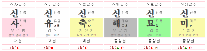신해일주와 신미일주는 삼합의 기운이라 친구나 동료들의 도움을 받거나, 함께 추진하는 일이 생길 수 있는 좋은 달입니다.