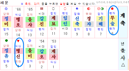 이렇듯 초년운이 기신으로만 흘러 불리한 경우에는 태원을 참조합니다.