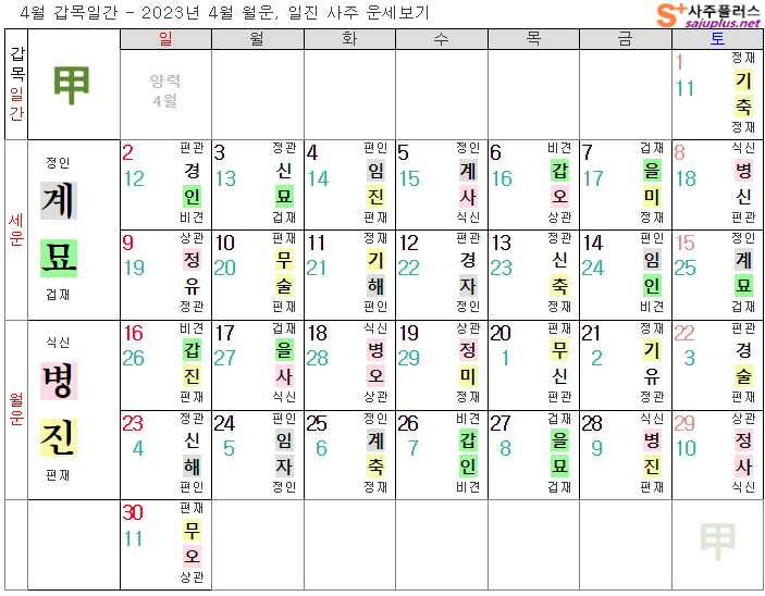 갑목일간 4월운세-2023년 4월(병진월) 일주운세 월운세, 일진운세 사주보기 운세보기