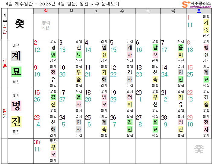 계수일간 4월운세-2023년 4월(병진월) 일주운세 월운세, 일진운세 사주보기 운세보기