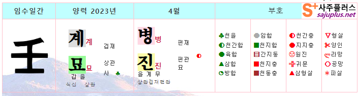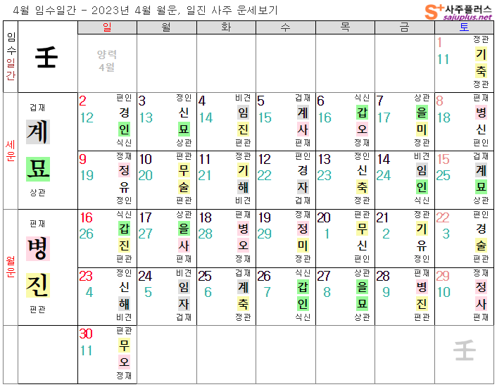 임수일간 4월운세-2023년 4월(병진월) 일주운세 월운세, 일진운세 사주보기 운세보기