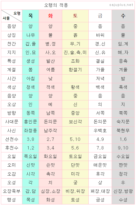 ❚ 오행의 적용