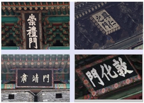 또한, 좌청룡에 해당하는 낙산이 너무 낮고, 산 능선 너머로 멀리 높은 산이 보여, 그 화를 누르고자 동대문인 흥인문은 글자를 한자 더 추가 하여 흥인지문으로 하고 역시 세로로 세워두게 됩니다.