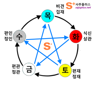 명리학에서는 음양과 오행의 상생과 상극 관계를 이용해 십성을 적용하고, 가족간의 육친관계를 나타내게 됩니다. 자신을 생조하는 인성, 자신이 생조하는 식상, 자신을 극하는 관성, 자신이 극하는 재성으로 오행을 분류하게 됩니다.