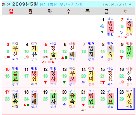 문제의 2009년입니다. 천간과 지지가 모두 흉운입니다. 길운인 대운이 흉으로 바뀌면서 오는 운이라 특히, 주의가 필요합니다.