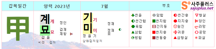 갑목일간 7월운세-2023년 7월(기미월) 일주운세 월운세, 일진운세 사주보기 운세보기