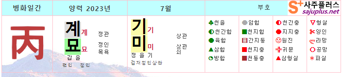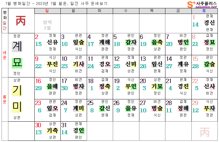 병화일간 7월운세-2023년 7월(기미월) 일주운세 월운세, 일진운세 사주보기 운세보기