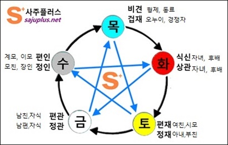 육친적관점 : 직장상사, 남)자녀, 조카, 매부 여)남편, 며느리,