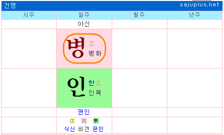 팔방이인이란 소리를 듣기 쉬우나 일관성이 부족해 유시무종, 겉과 속이 달라 진정성이 없는 사람이란 평도 받게 됩니다. 일지에 편인 흉신이 자리하면 배우자 역시 편인의 부정적인 행동과 생활태도를 보입니다.