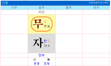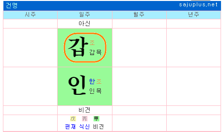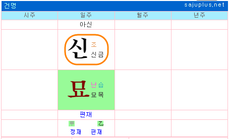 갑인, 경신, 기미, 기축, 무술, 무진, 신유, 을묘일주