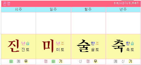 진토는 봄으로 목오행인 갑목과 을목일간에게는 계절적으로 비겁의 의미를 지니고, 병화나 정화일간에게는 인성의 의미가 됩니다. 미토는 여름으로 병화나 정화에게는 비겁의 의미, 무토나 기토에게는 인성의 읨가 있습니다. 술토는 경금, 신금일간에게는 비겁의 의미를 지니고, 축토는 갑목이나 을목일간에게 인성의 의미를 적용하시면 됩니다.