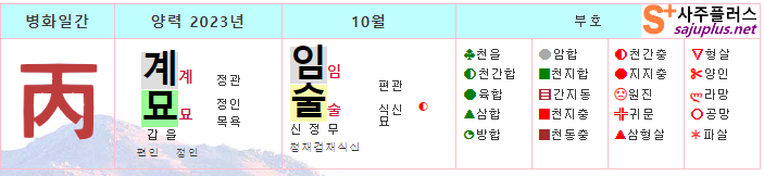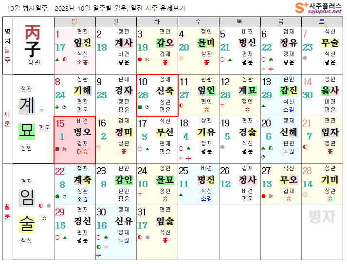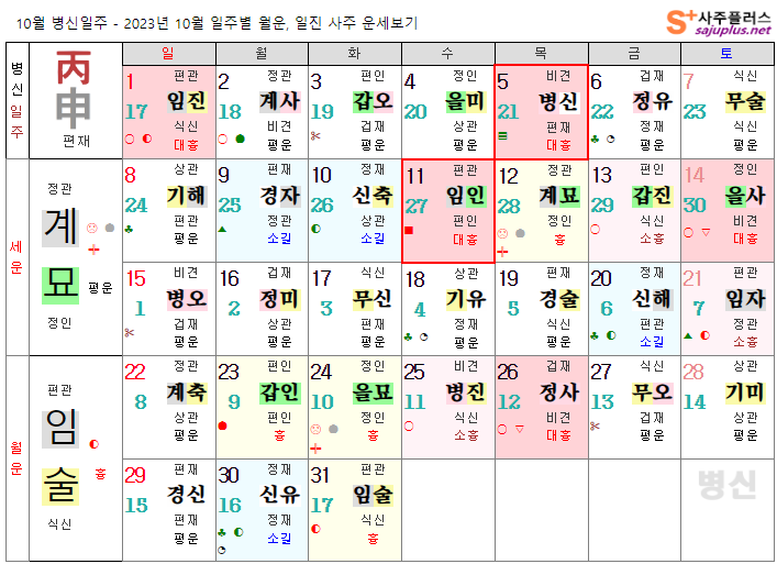 병화일간 10월운세-2023년 10월(임술월) 일주운세 월운세, 일진운세 사주보기 운세보기