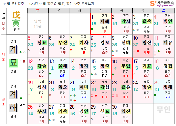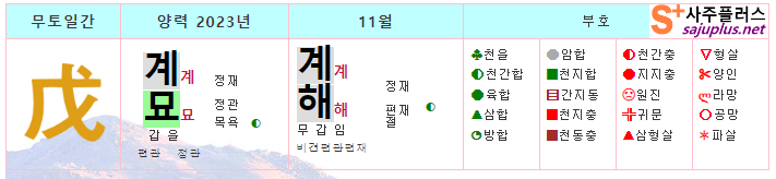 무토일간 11월운세-2023년 11월(계해월) 일주운세 월운세, 일진운세 사주보기 운세보기