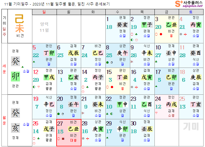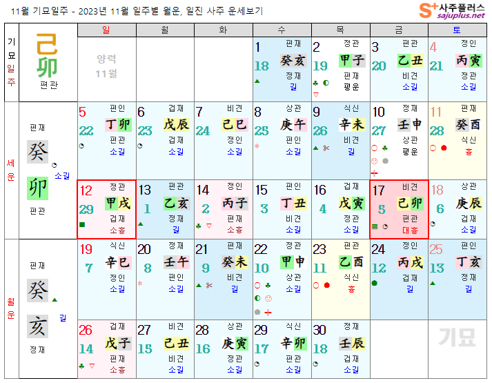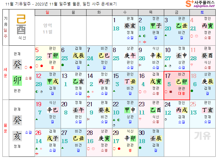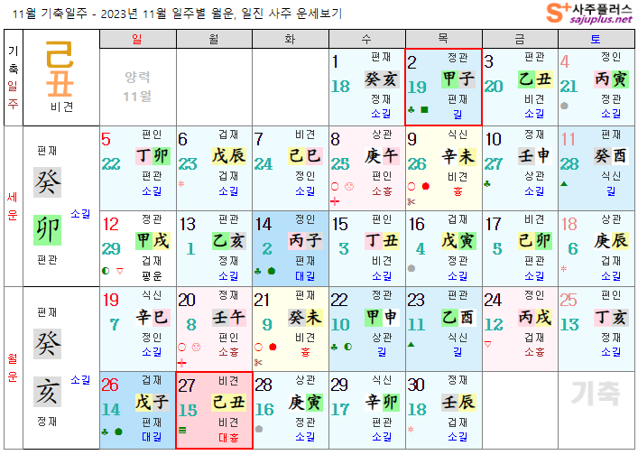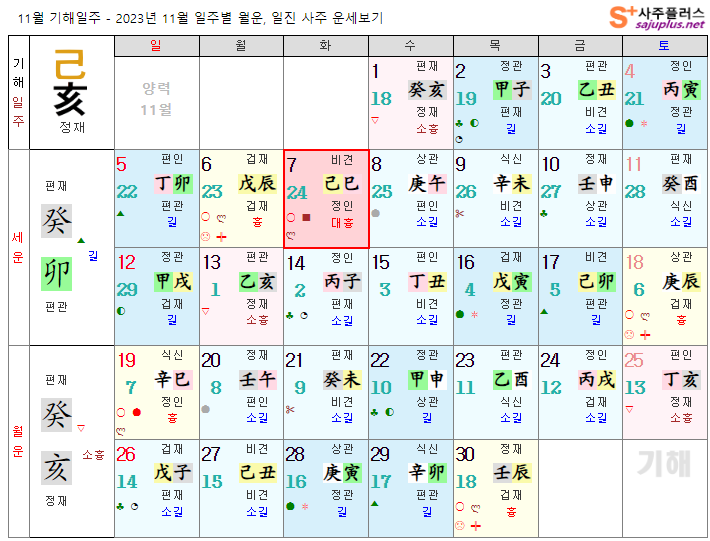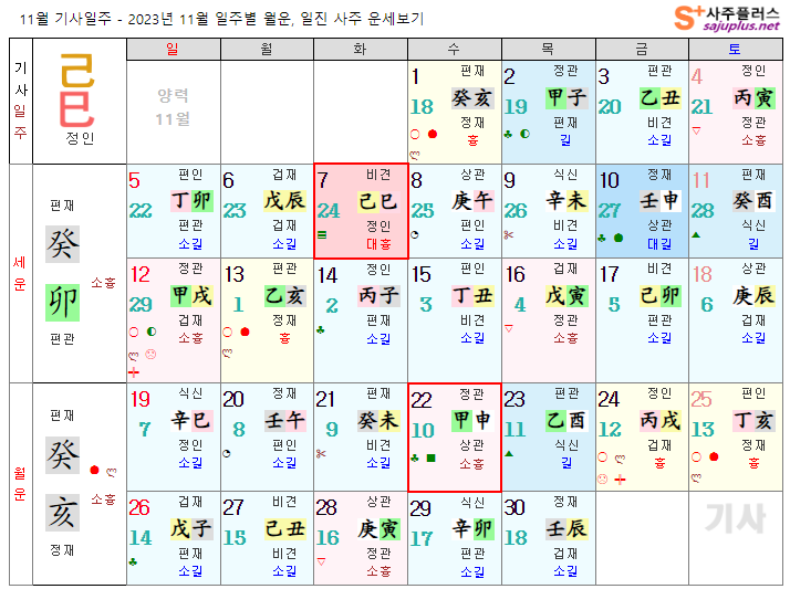 기토일간 11월운세-2023년 11월(계해월) 일주운세 월운세, 일진운세 사주보기 운세보기