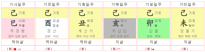 기해일주는 건강문재나 손재수에 유의하셔야 하는 달이 되고, 기묘일주는 친구나 동료들의 도움이 크거나 함께 일을 추진하는 좋은 한 달입니다.