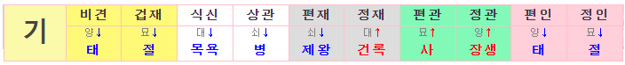 편관이 사지라 그동안 자신을 누르던 압박이나 스트레스가 줄어듭니다. 정관이 장생이라 직장운이나 명예가 상승하는 운으로, 승진, 승급 등의 좋은 소식도 따르게 됩니다.