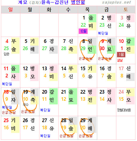 ❚ 양력 2024년 2월의 [손없는날]