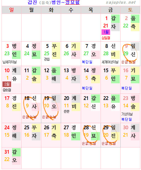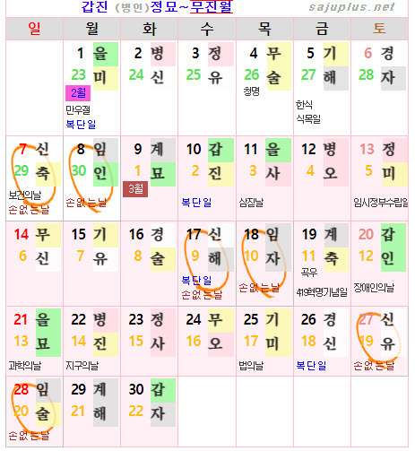 ❚ 양력 2024년 3월의 [손없는날]
