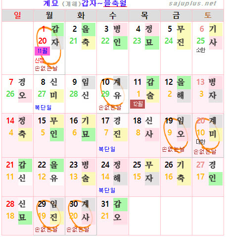 ❚ 양력 2024년 11월의 [손없는날]