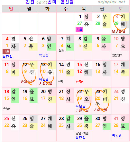 ❚ 양력 2024년 7월의 [손없는날]